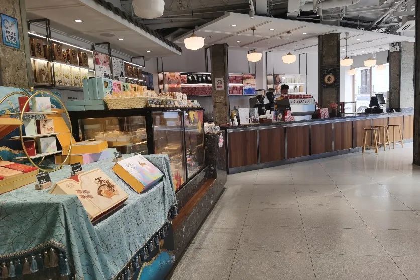 堂食区域除了有柜台销售乔家栅的经典糕点及现做包子之外,还有一个干净透明的操作间,鲜肉月饼的香味儿就偷偷地从这个操作间钻进现场每位客人的鼻子里。于是,喝完咖啡后,顺带买盒点心或者鲜肉月饼就显得稀松平常了。