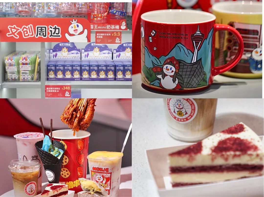 9月28日,蜜雪冰城在大本营郑州开了家特别的店——这家店“奶茶、果茶、咖啡、冰淇淋、蛋糕、炸串、零售”6大品类全都卖,还有椰乳烩面、烙馍冰淇淋等神奇组合的产品。
