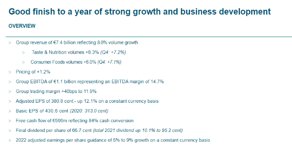 据悉,凯爱瑞各项业务中,味觉和营养产品(Taste & Nutrition volumes)销量增长了8.3%,第四季度增长了7.2%;消费食品(Consumer Foods volumes)销量增长6%,第四季度增长7.1%。